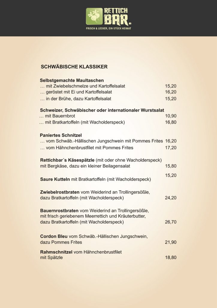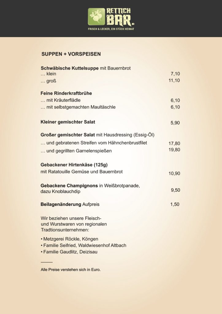 Fragen Sie unser Service-Personal nach unseren Tages-Angeboten und Mittagstisch. Entspannen Sie sich bei uns im Stüble, im urigen Wintergarten oder im Biergarten. Alle Speisen können Sie gerne in Ihren mitgebrachten Behältern mitnehmen oder auch in unseren Glasschalen (Pfand).