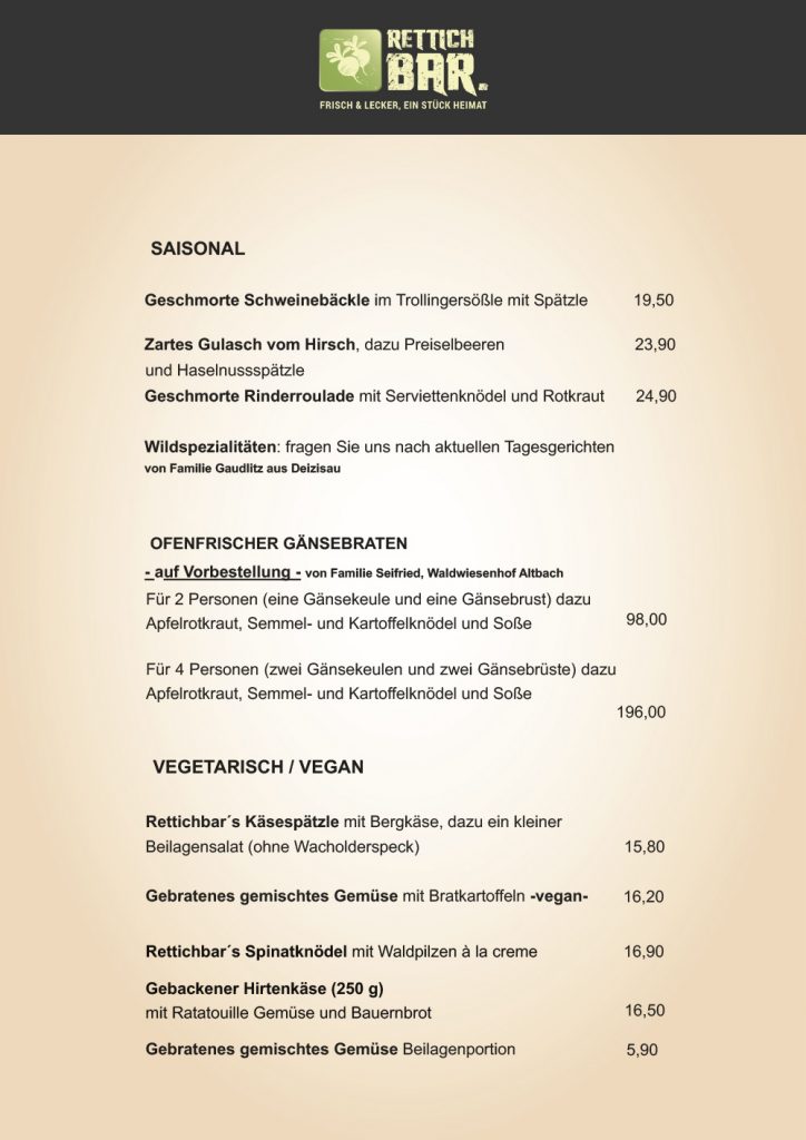 - Rettichbar´s Käsespätzle mit Wachholderspeck und Bergkäse dazu ein kleiner Salat